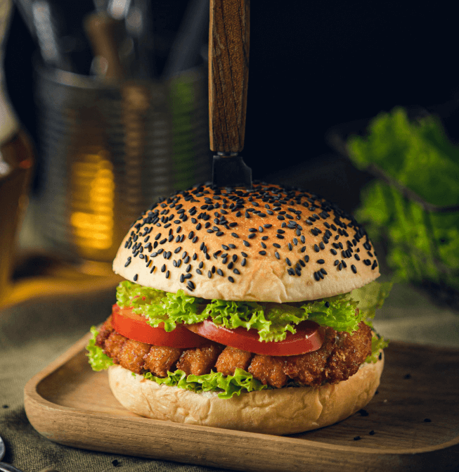 A chicken burger is a savory sandwich typically ma